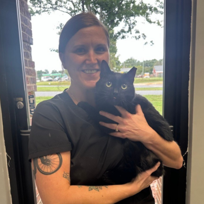 Dr. Tramble first began her career in veterinary medicine as a high school student working as a kennel assistant. She was born and raised in Alabama and attended Florida A&M University, where she earned her bachelor’s degree in animal science and pre-veterinary medicine. Upon graduation, she returned to Alabama and attended Tuskegee University College of Veterinary Medicine, where she earned her Doctorate of Veterinary Medicine. In search of a new adventure, she relocated to North Carolina with her 2 German shepherds, Calypso and Juniper, and her 4 cats.